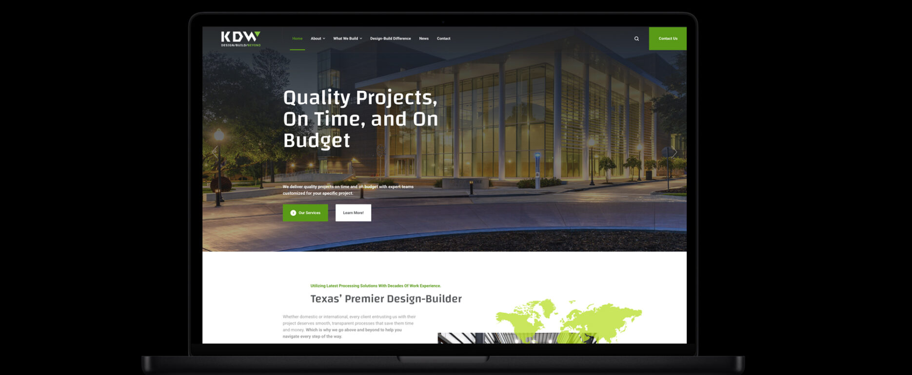 The new website needed to reflect KDW’s experience and design expertise. The site features a responsive and immersive user experience that showcases their portfolio, highlights their design process, and captures the essence of their brand. KDW is a leader in the design-build industry.